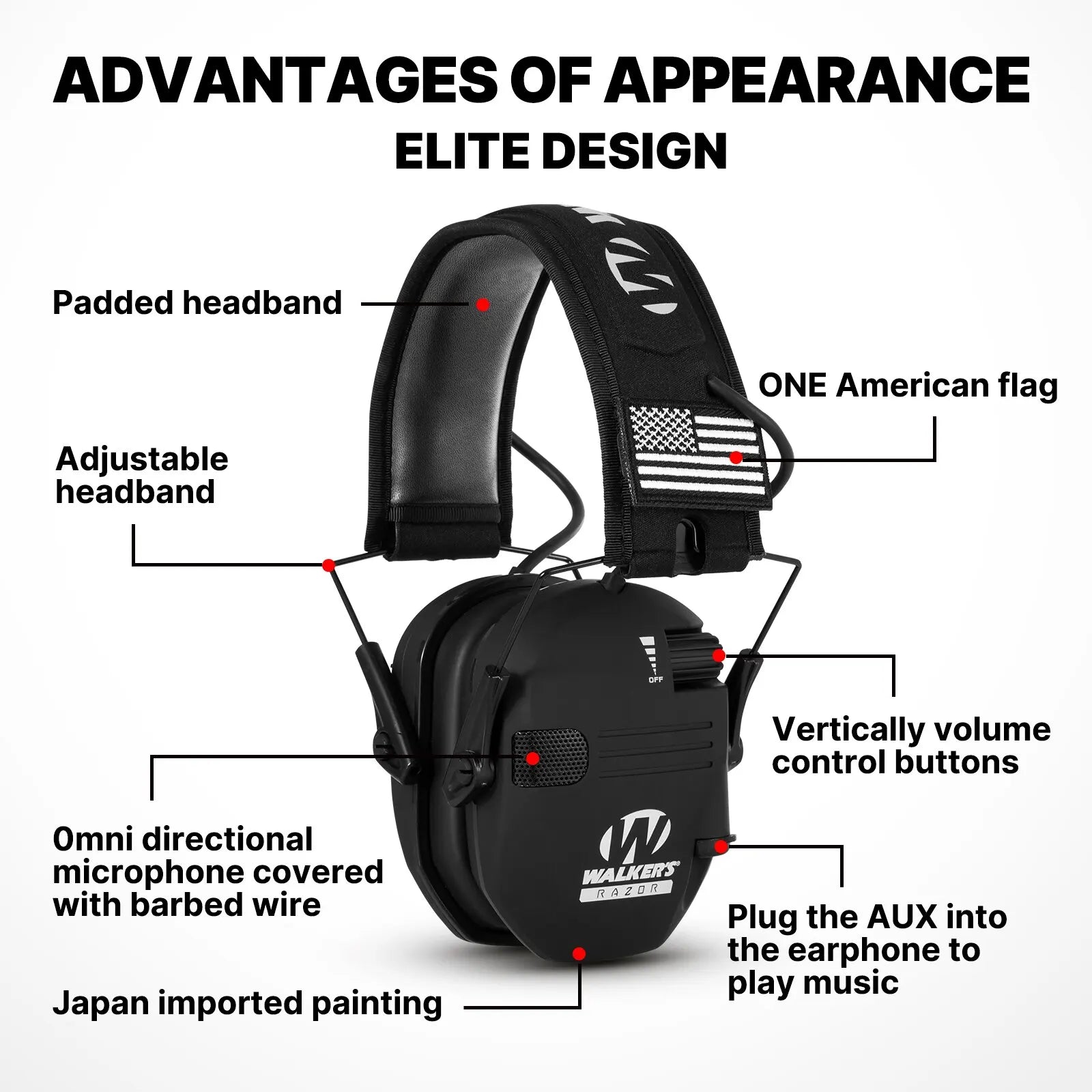 • Electronic Earmuff for Walker's Razor Slim Ultra Low Profile Compact Design :The earmuff is designed to be compact and low-profile, making it easy to carry around and use in any situation.