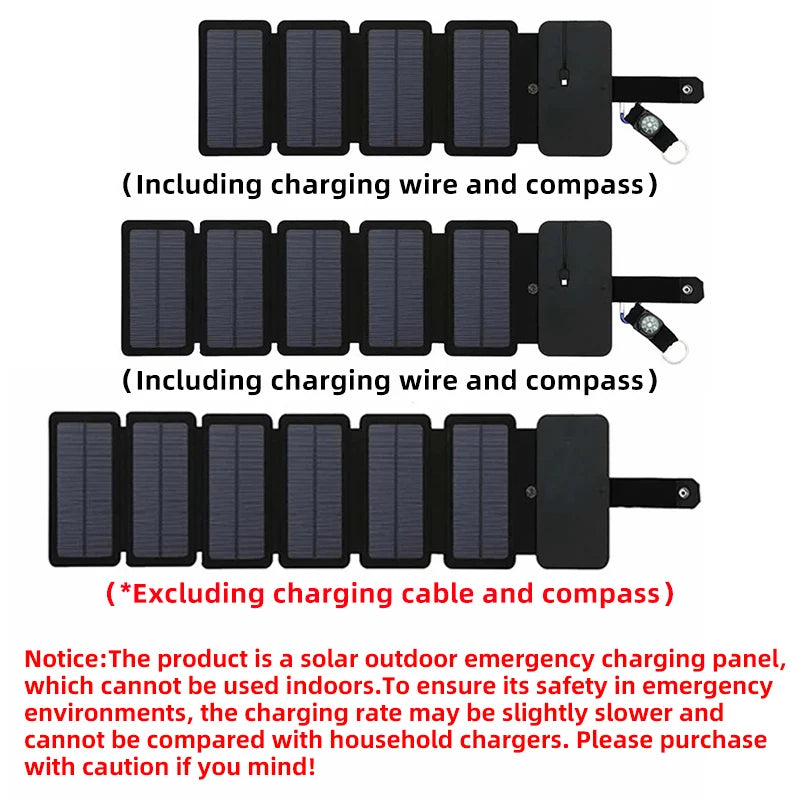 *The product is a solar outdoor emergency charging panel, which cannot be used indoors. To ensure its safety in emergency environments, the charging rate may be slightly slower and cannot be compared with household chargers. Please purchase with caution if you mind!