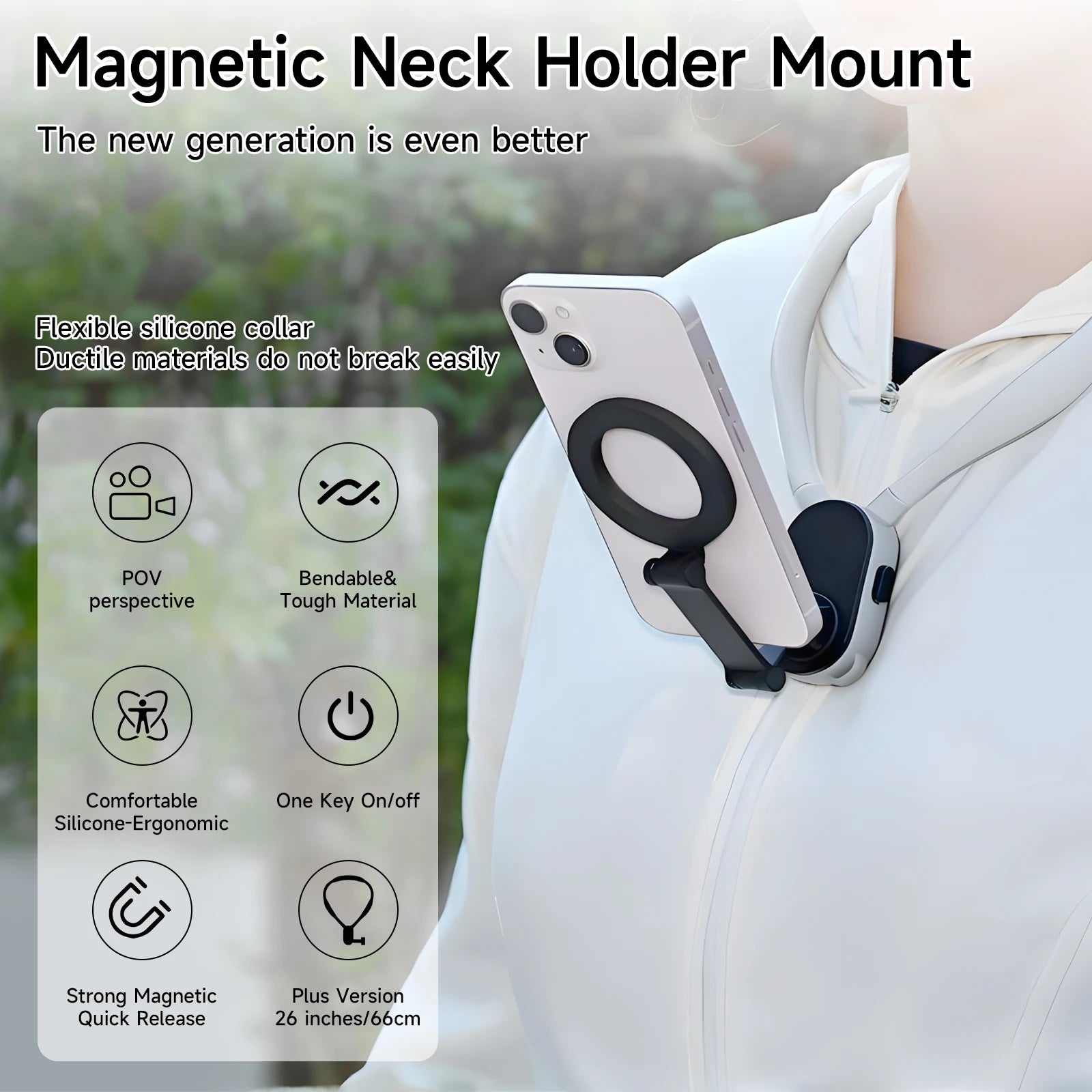 Magnetic Neck Mount for Phones Holder GoPro Holder, Neck Cell Phone Holder POV/Vlog Selfie Mount Hand Free Phone Neck Holder Chest Stand Strap Video Recording for gopro iPhone Android Phones